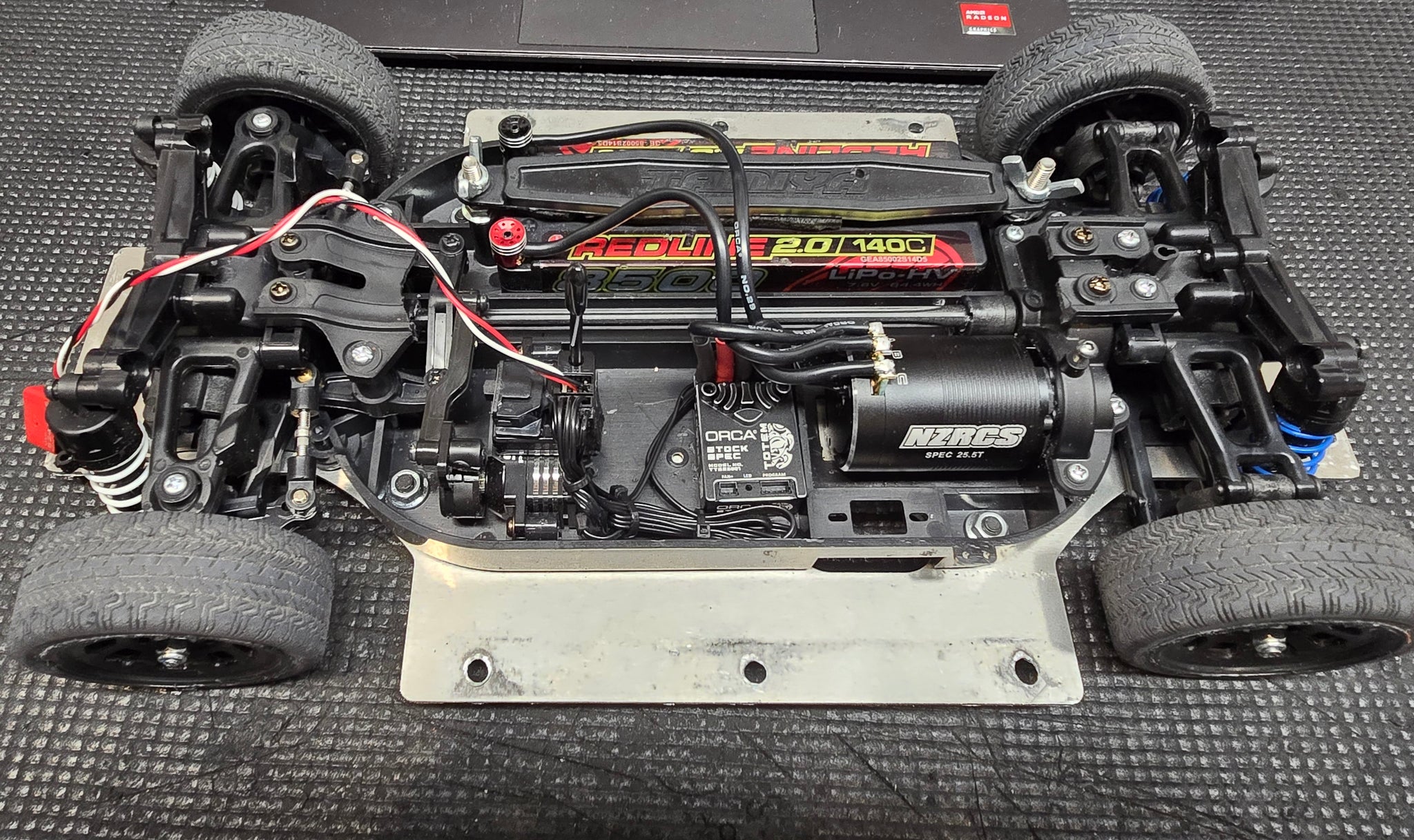 - Everything upgraded to the rules, Shocks, Springs, Bearings, Hubs, Servo Saver, Turnbuckles